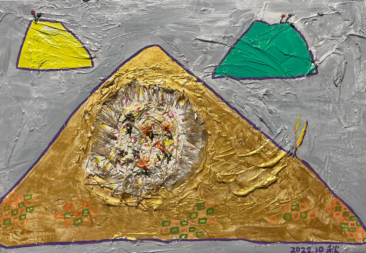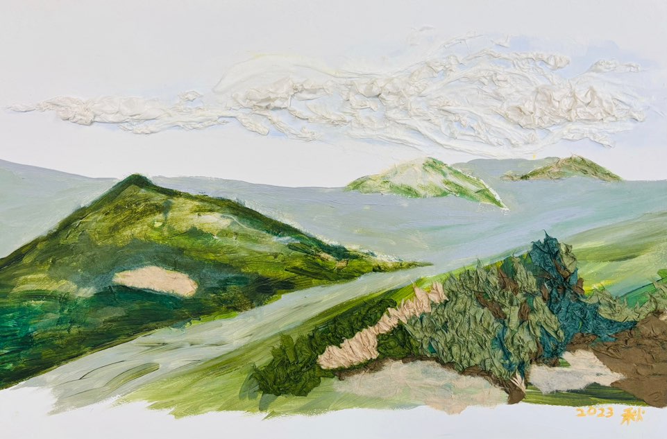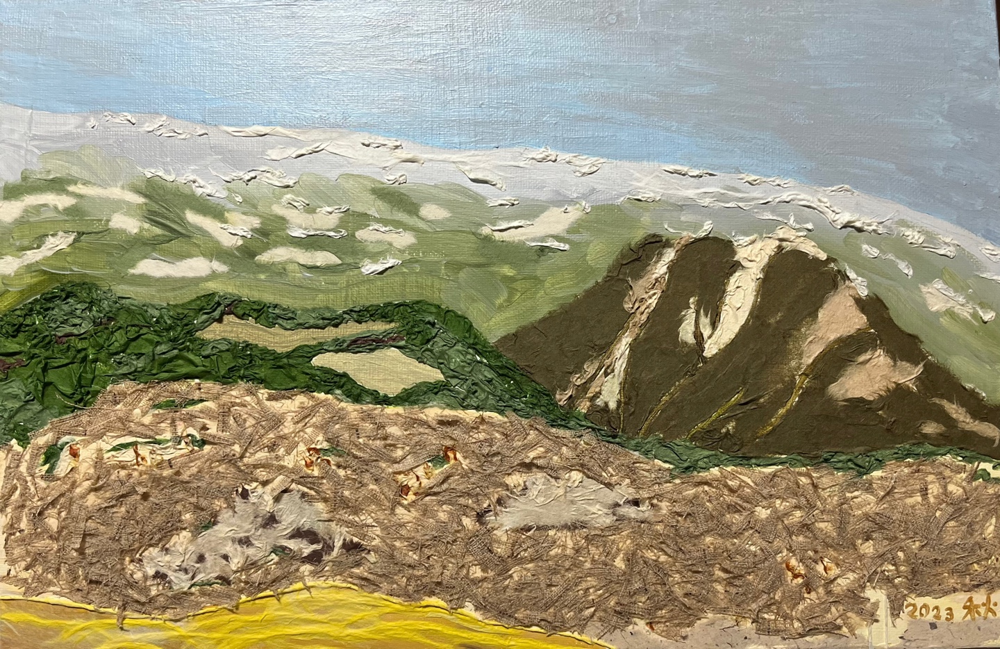 제주에는 365개가 넘는 오름이 있다고 합니다. 사람의 얼굴이 모두 다르듯, 제주의 오름 역시 살짝살짝 다르게 형성되어 있습니다. 멍하니 오름을 바라보고 있노라면 그 모습은 아주 아기자기하고 다른 색감으로 다가옵니다. 저는 유화와 아크릴 물감, 그리고 한지를 이용하여 각기 다른 오름의 얼굴을 표현하고 있습니다.