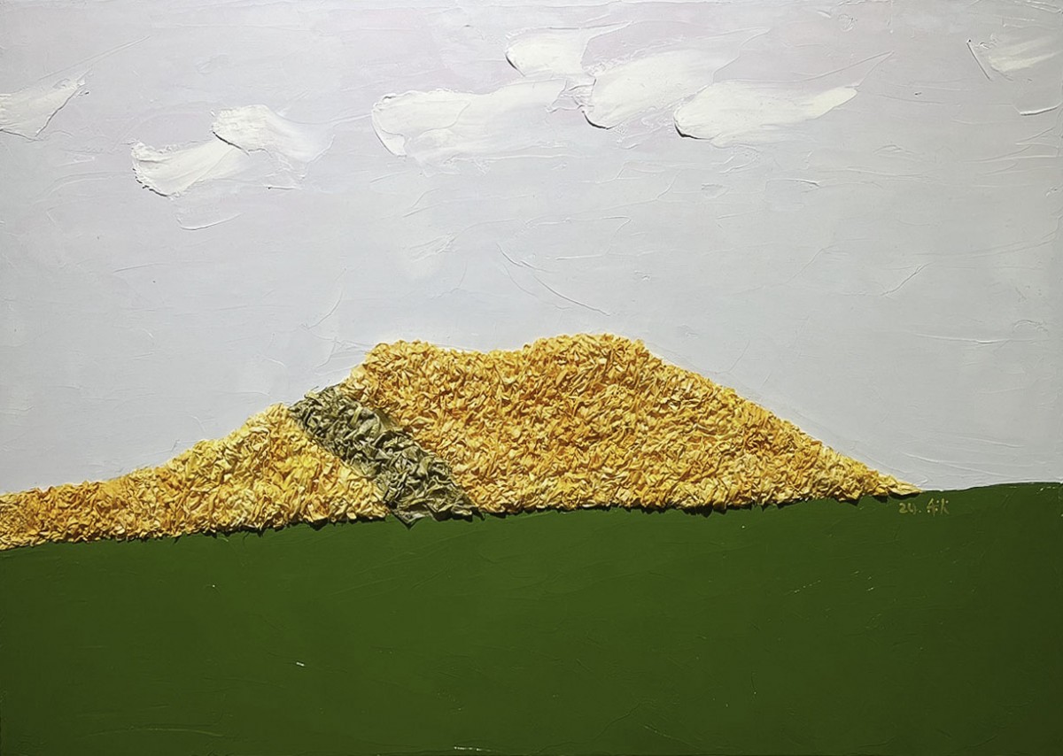 저는 유화와 아크릴 물감, 그리고 한지를 이용하여 각기 다른 오름의 얼굴을 표현하고 있습니다.